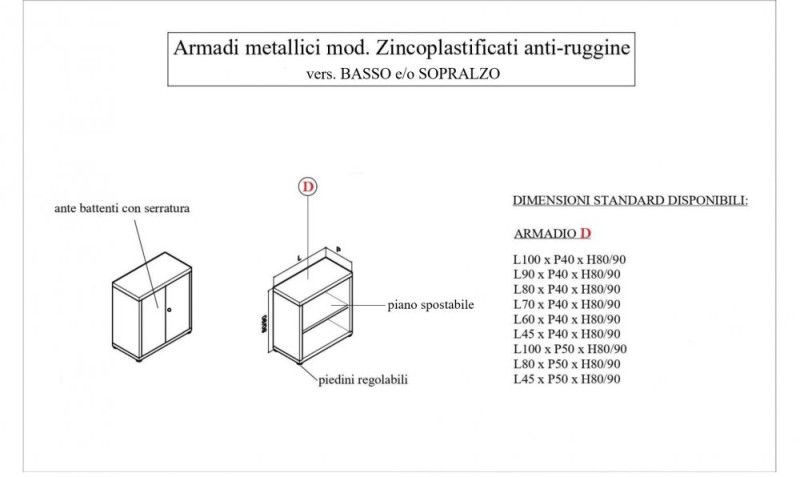 Caratteristiche principali degli armadi zincoplastificati bassi: