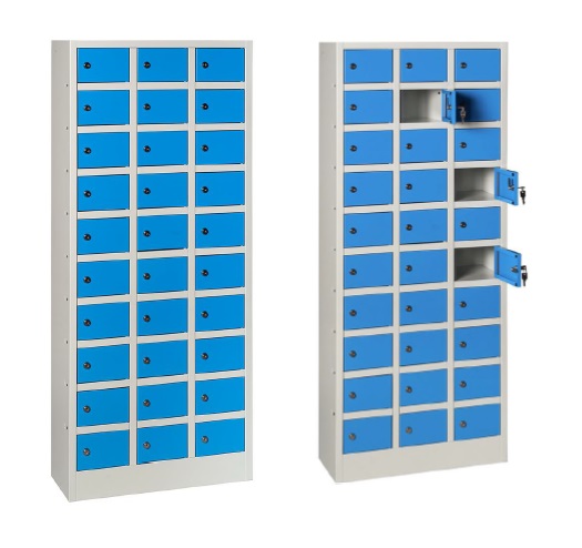 30 sportelli singoli (L 176 x H 118 mm), verniciati in Blu RAL 5015