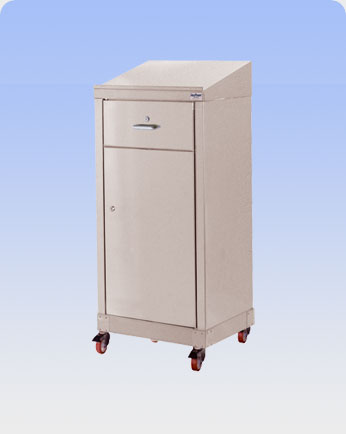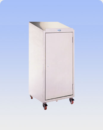 Armadio carrellato su 4 ruote piroettanti in gomma, di cui 2 con freno, oppure su 4 piedini in acciaio inox.
