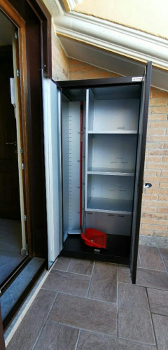 Gli armadi da esterni zincoplasticati, tipo Porta Scope, sono dotati internamente di un vano verticale Porta Scope e di pianetti metallici spostabili.
