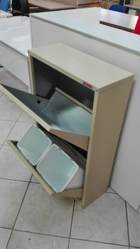Armadio metallico vers. ZINCOPLASTIFICATA mod. RACCOLA DIFFERENZIATA a 2 sportelli a ribalta con 4 secchi colore Bianco da 25 Lt. c.ca