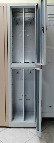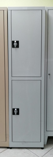 Armadio metallico vers. ZINCOPLASTIFICATA mod. SPOGLIATOIO SOVRAPPOSTO, 2 ante sovrapposte (...1 + 1...), tipo Sporco / Pulito, colore Grigio Chiaro, dimensioni cm 45 L x 40 P x 180 H.