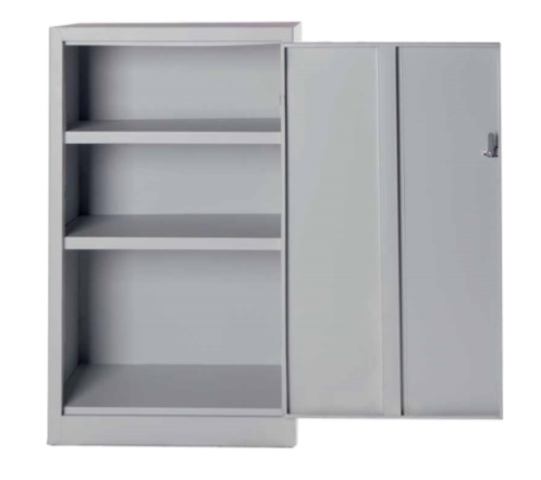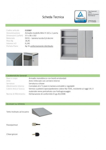 Armadi in metallo bassi con un'anta battente dotata di serratura cilindro con chiave fornita in duplice copia.
