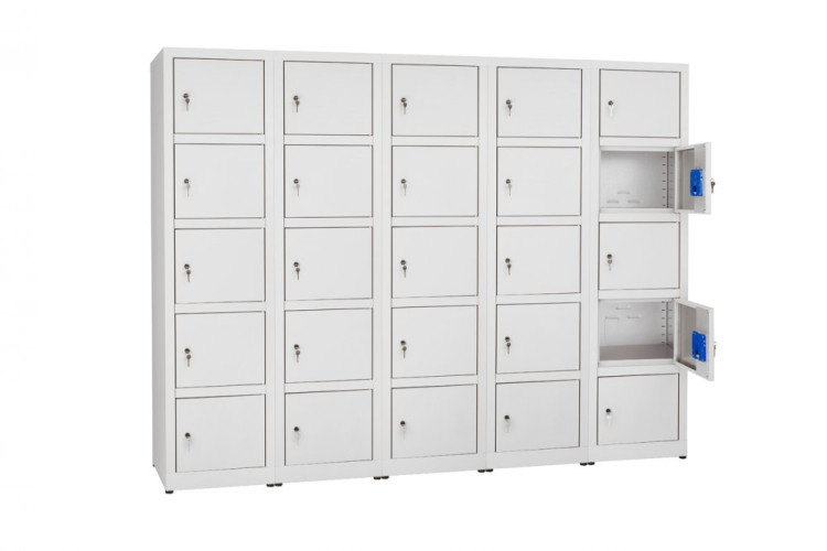 Armadio zincoplastificato porta oggetti, dotato di 4, 5 e 6 ante con serratura a cilindro con chiave fornita in duplice copia.