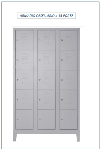 I armadi casellari metallici sono progettati per offrire ordine e sicurezza in ambienti professionali, spogliatoi, palestre e uffici. Forniti già montati, sono disponibili in modelli a 5, 10 e 15 vani, garantendo massima capienza e praticità.