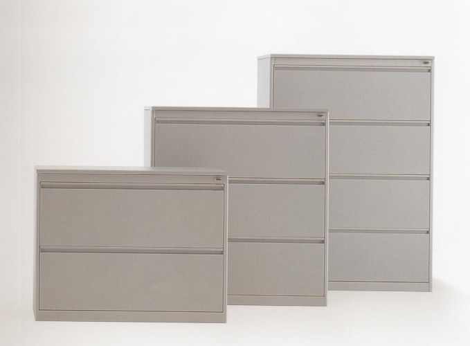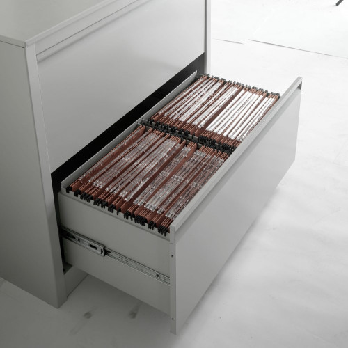 Classificatore metallico orizzontale a 4 cassetti lunghi, su guide metalliche e dotati di meccanismo di antiribaltamento.