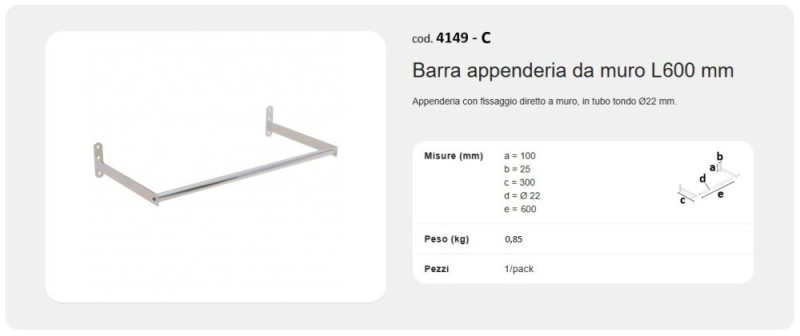 Design e robustezza: la nostra barra per appenderia a muro è realizzata in tubolare di acciaio da 22 mm, con una raffinata finitura cromata lucida che aggiunge un tocco di eleganza a qualsiasi ambiente.