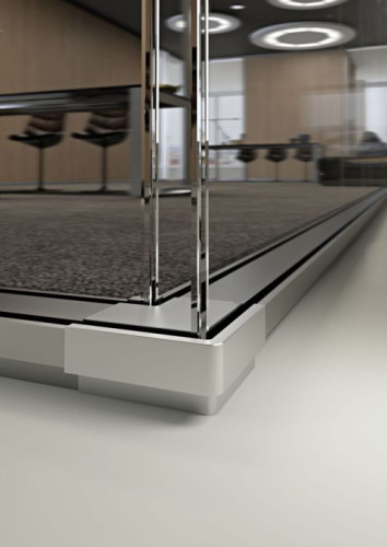 Profilo Minimalista Integrato: La struttura consente l'incasso dei profili a pavimento e soffitto, rendendoli invisibili per un impatto estetico di puro vetro.