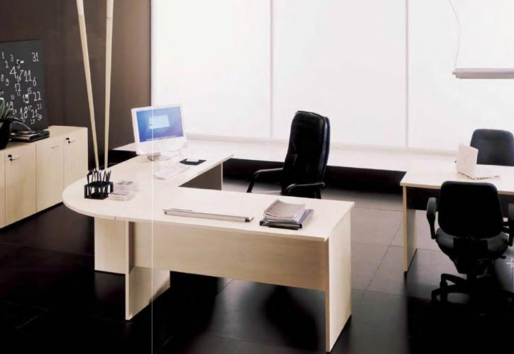 Scrivania mod. MR JOB, realizzata con piani e fianchi in nobilitato melaminico a bassa emissione di formaldeide e ad alta resistenza.