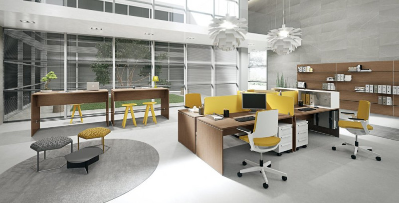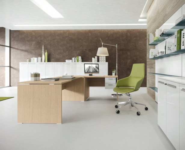 Scrivania mod. TREKO, componibile, realizzata in nobilitato legno spessore mm 25.