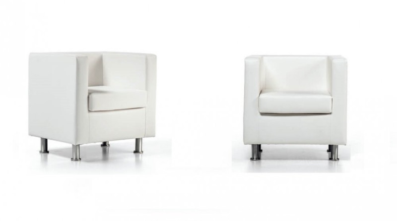 Poltrona e divani d'attesa mod. FIRST , forniti montati, realizzati con struttura portate in in legno tamburato di multistrato, imbottitura in poliuretano espanso, rivestimento in tessuto ignifugo di vari colori oppure in finta pelle (eco-pelle) ignifuga di vari colori, 4 piedini in tubolare di acciaio finitura Cromato lucido, regolabili.