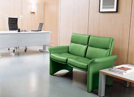 Divani d'attesa mod. ALIA, a 2 e 3 posti, ralizzati con struttura interna in legno, imbottito in poliuretano espanso, rivestimento di vari colori, in tessuto ignifugo, finta pelle ignifuga, e in vera pelle. Piedini in abs colore Nero.