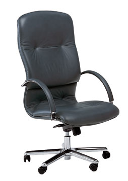 Poltrona presidenziale mod. QUEEN, realizzata con base a 5 razze in metallo Cromato Lucido con ruote gommate piroettanti.