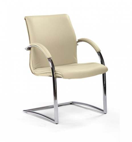 Poltrona presidenziale RANG, con braccioli in lama di acciaio cromata e bracciolini rivestiti, come sopra descritto.