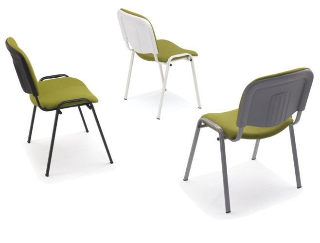 Seduta interlocutoria impilabile realizzata con struttura interna del sedile e dello schienale multistrato di faggio e pioppo, entrambi imbottiti in poliuretano espanso e rivestiti in Tessuto ignifugo vari colori, oppure Finta Pelle (eco-pelle) in vari colori.