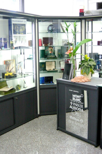 Vetrina VBM realizzata con struttura in alluminio stondato di varie finiture.